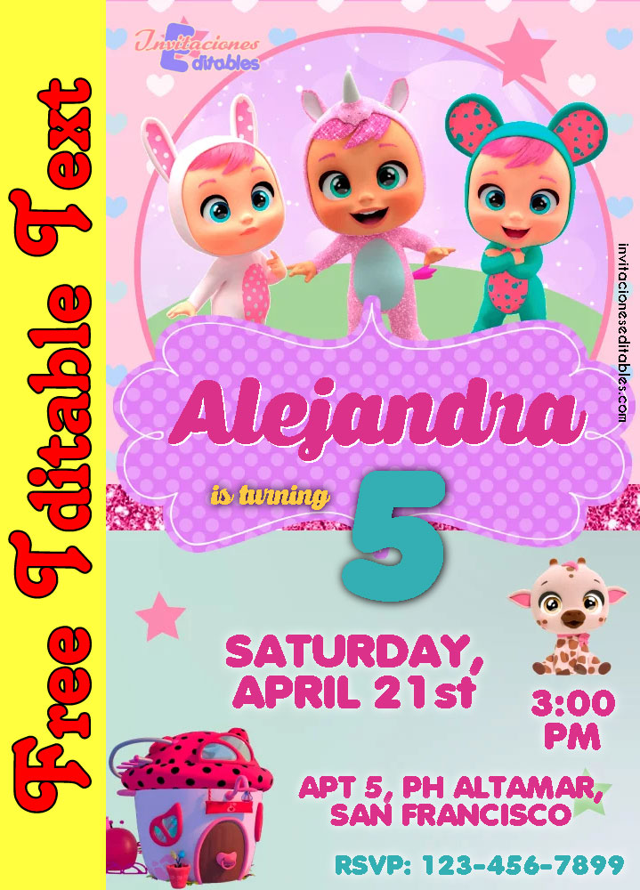 Don’t be complicated to design an invitation. This Cry Babies invitation to edit online will get you out of trouble.